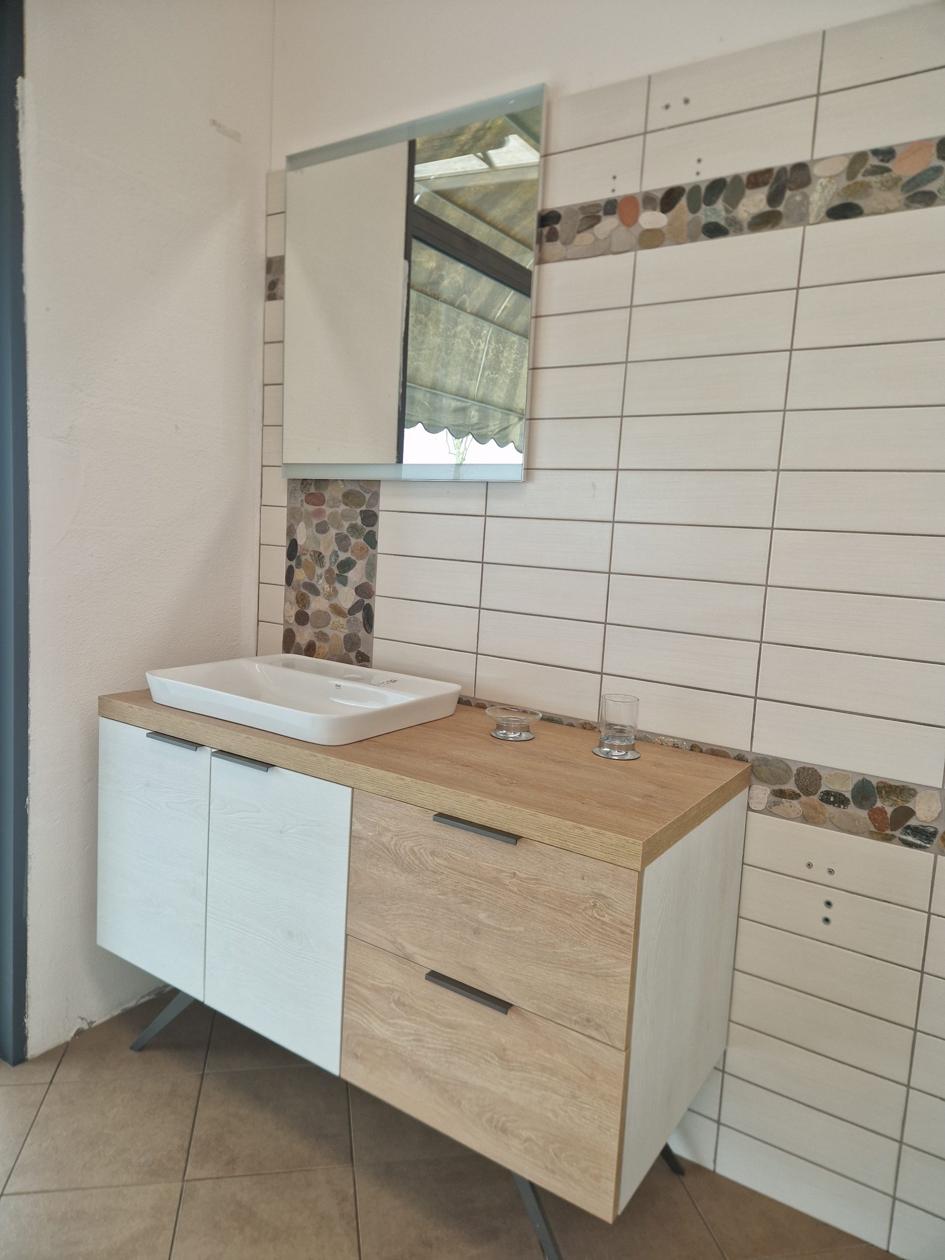 Mobile Ideal Bagni Linea System finitura melaminico Nodato Bianco + Nodato Rovere